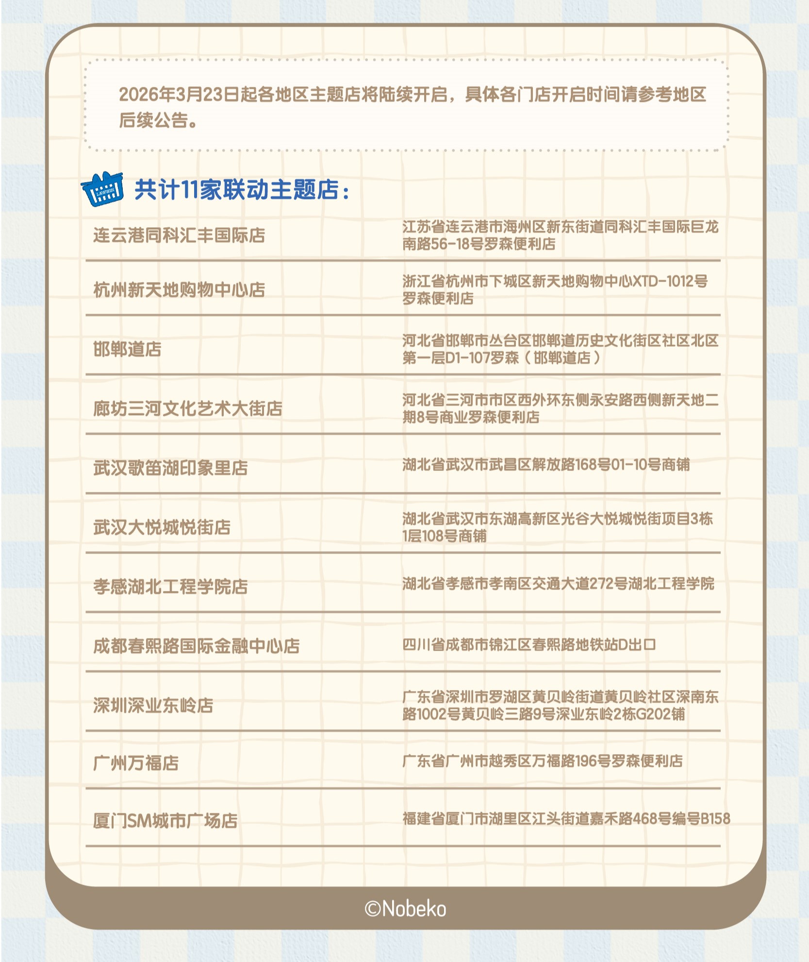 全国11家暹罗猫小豆泥×罗森联动主题店将陆续上线,欢迎各位的光临!