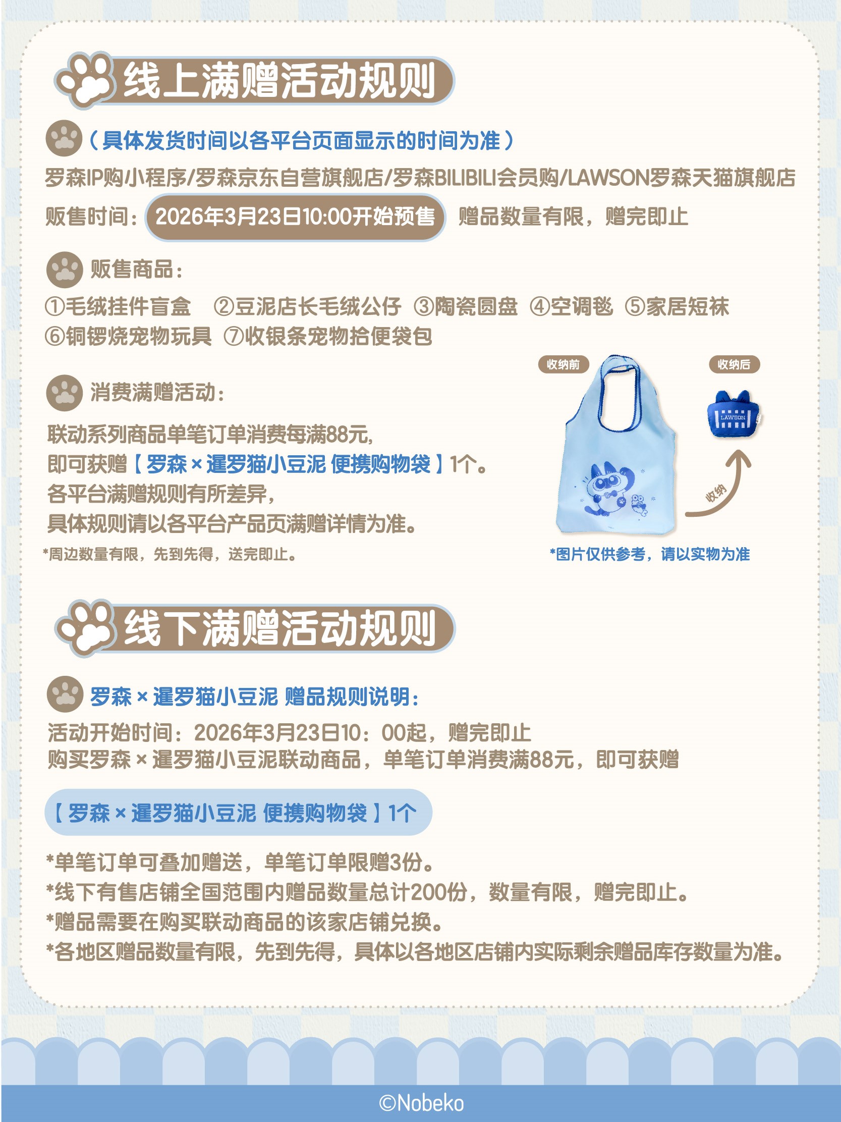 🛒线上预售:罗森IP购小程序/罗森京东自营旗舰店/罗森BILIBILI会员购/LAWSON罗森天猫旗舰店开启线上预售;